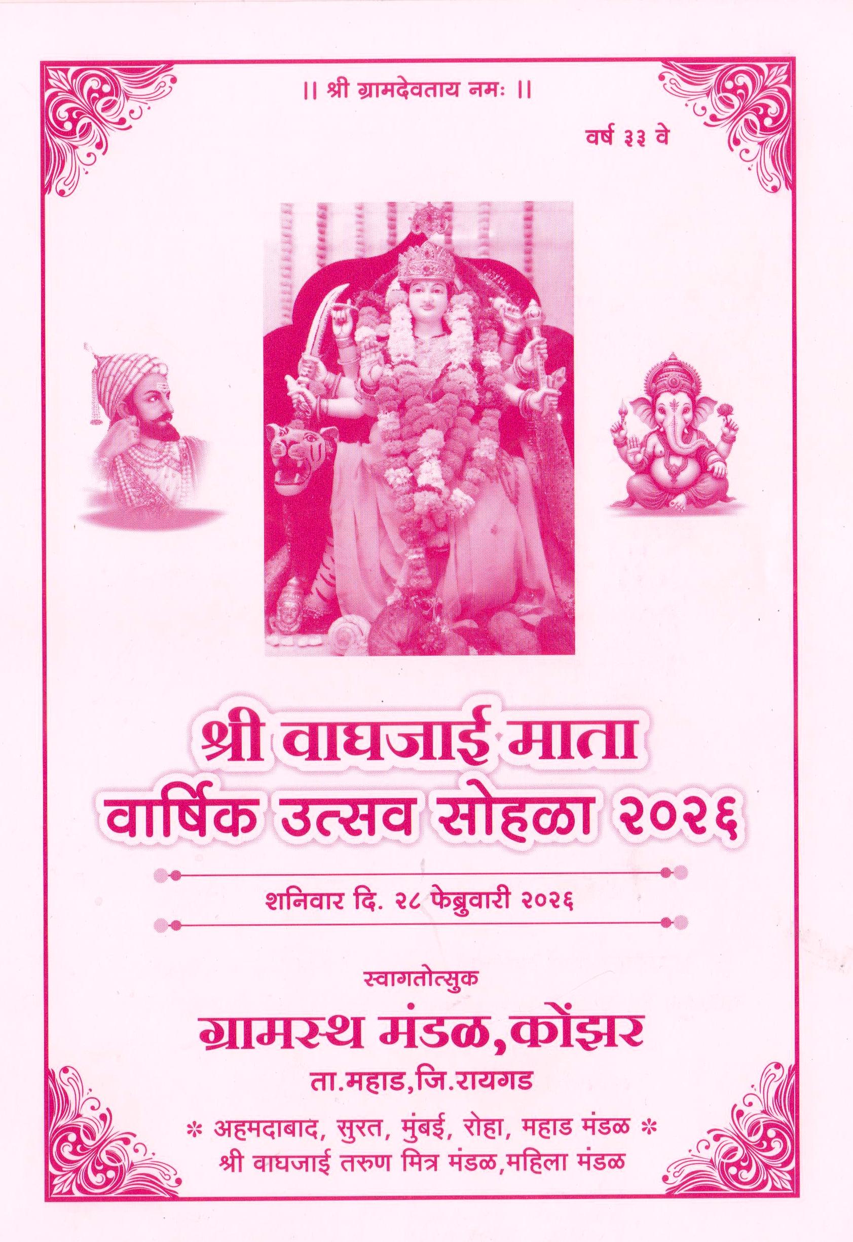 श्री कोंझर ग्रामस्थ मंडळ, कोंझर आमची जन्मभूमी “कोंझर” कोंझर गाव, छत्रपती शिवाजी महाराजांनी स्थापन केलेल्या हिंदवी स्वराज्याची राजधानी “ रायगड “दुर्गाच्या पायथ्याशी वसलेले आहे. आपल्या गावाचे नाव अमुकच का? असे सर्वांच्या मनात कुतूहल जागे होणे स्वाभाविकच आहे. आम्ही लहानपणापासून आमच्या गावाच्या नावाबद्दल आख्यायिका ऐकून आहोत. आमच्या गावाची रचना मात्र एका अभेद्य किल्ल्या प्रमाणे वाटते. गावाच्या उत्तर-दक्षिण प्रवेशद्वारावर हनुमंताची मंदिरे आहेत. पश्चिम दिशेस ग्रामदैवत वाघजाई मातेचे स्वयंभू स्थान आहे. तर पूर्वेस अभेद्य रायगड. महाराष्ट्राच्या आराध्य दैवत तुळजापूर भवानीच्या कृपाशिर्वादाने, गोब्राह्मण प्रतिपालक हिंदुपतपादशाह छत्रपती शिवाजी राजे भोसले यांच्या स्वराज्यातील हत्ती तळ (कुंजर तळ) या ठिकाणी होते. “कुंजर” चा अपभ्रंश “कोंझर” म्हणून या ठिकाणाला कोंझर हे नाव पडले असावे असा तर्क आहे. या साठी पुष्टी म्हणून उल्लेखाविशी वाटते ती ही की, त्याकाळी शिवाजी महाराजांच्या सैन्यातील घोडदळ स्वारीवर जाता येता “कोंझर” गाव व रायगडला जोडणा-या रस्त्यादरम्यान घाटमाथ्यावर आपल्या घोडयांना पाणी दयायचे त्या परिसराला आजही “घोडटांकी” असे संबोधतात व तेथील दोनतीन किलो मीटरच्या शेत जमीनीना “ घोडेधाव” असे आमचे शेतकरी उल्लेखतात म्हणजेच सैन्यदलाची ये-जा “कोंझर” पर्यंत नेहमीच असावी व हत्तीचे तळ येथे असण्याची शक्यता नाकारता येत नाही. आम्हा सर्वाना राखणारी “वाघजाई” माता आमच्या गावचे ग्रामदैवत आहे. वाघजाई मातेचे “स्वयंभू” स्थान गावाच्या पश्चिमेकडून वाहणाऱ्या गांधारी नदीच्या रम्य किनारी उंच झाडाच्या कीर्द राई मध्ये आहे. तसेच बोरजाई मातेचे “स्वयंभू” स्थान गावाच्या दक्षिणेस आहे. वाघजाई मातेच्या कृपाआशिर्वादाने आज ही भक्त गण सुखा समाधाने नांदत आहेत तिच्या आशिर्वादामुळेच सर्व कोंझर वासीयांचे अनेक संकटापासून संरक्षण झाले आहे. आई वाघजाईच्या कृपा प्रसादामुळे अनेक भक्तांच्या मनोकामना पूर्ण झालेल्या आहेत. या स्वयंभू स्थानाबद्दल अभिमानाने आणी श्रद्धेने येथे लिहावेसे वाटते. आईचे सत्व महिमा अगाध आहे. आईच्या स्वयंभू स्थानाच्या परिसरात भक्तांचे पाउल पडताच व्याघ्र गर्जना सारखा आवाज कानी ऐकू यायचा. या आवाजाने ते स्थान मंगलमय व्हायचे, व एक प्रकारे या आवाजाने मन गडबडून जाऊन आपोआप दोन्ही हात जुळून येवून आईला नतमस्तक व्हायचे. मन प्रसन्न व्हायचे. हा अनुभव आज ही सांगतात. धन्य आई!! वाघजाई माता. दैनंदिन पजेचे साठी ग्रामस्थांनी स्ववर्गणीतून एक भव्य मंदिर गावाच्या मध्यभागी उभारले आहे. या ठिकाणाहून आपण त्या अभेदय दुर्गराजाचे दर्शन घेऊ शकतो. हे सुद्धा कळत नकळत घडलेले आश्